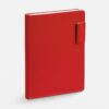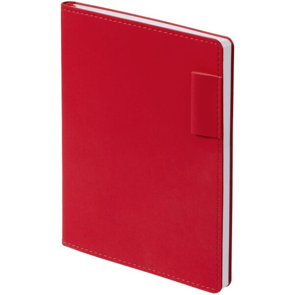 Ежедневник с гибкой обложкой из материала Soft Touch Ultra, красный РР и Latte, красный (внутренний материал), дополнен петелькой для ручки из покровного материала, капталом, ляссе и закрашенным срезом обложки в цвет материала.