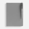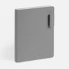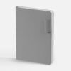 Ежедневник с гибкой обложкой из материала Soft Touch, серый СС и Latte, серый (внутренний материал), дополнен петелькой для ручки из покровного материала, капталом, ляссе и закрашенным срезом обложки в цвет материала.