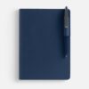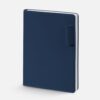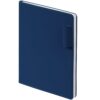 Ежедневник с гибкой обложкой из материала Soft Touch, синий НН и Latte, темно-синий (внутренний материал), дополнен петелькой для ручки из покровного материала, капталом, ляссе и закрашенным срезом обложки в цвет материала.
