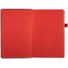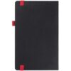 Ежедневник с твердой обложкой, выполнен из материала Waltz, черный АА, дополнен красными резинкой и ляссе.