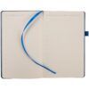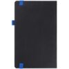 Ежедневник с твердой обложкой, выполнен из материала Waltz, черный АА, дополнен синей резинкой и ляссе.