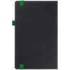 Ежедневник с твердой обложкой, выполнен из материала Waltz, черный АА, дополнен зеленой резинкой и ляссе.