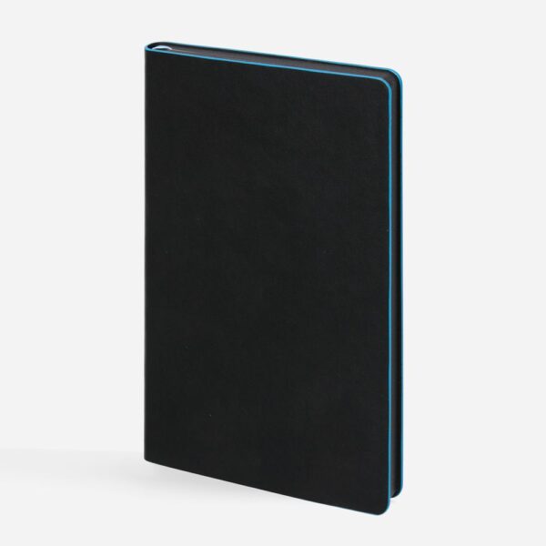 Ежедневник с гибкой обложкой, выполнен из материала Waltz, черный АА, дополнен цветными срезом обложки и ляссе.