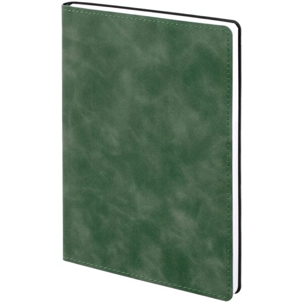 Ежедневник с гибкой обложкой, выполнен из материала Nubuck Touch, зеленый FF, дополнен ляссе темно-зеленого цвета.