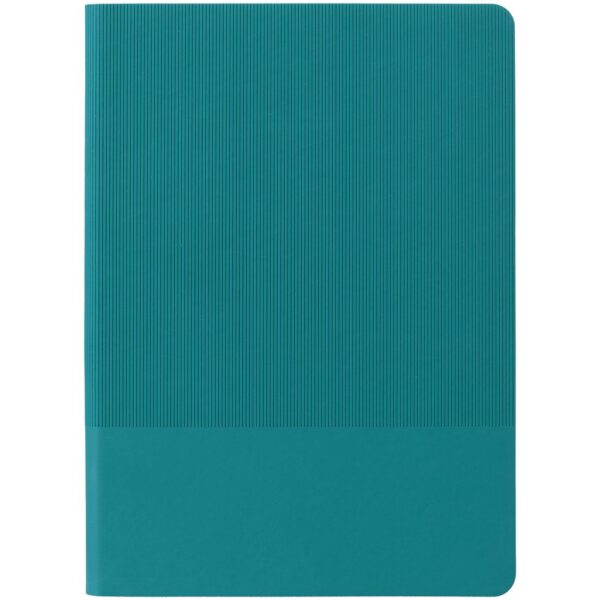 Ежедневник с гибкой обложкой выполнен из материала Soft Touch, цвет морской волны II и Latte, цвет морской волны (внутренний материал); дополнен ляссе бирюзового цвета и фактурным тиснением обложки.