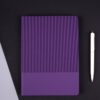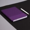 Ежедневник с гибкой обложкой выполнен из материала Soft Touch, фиолетовый UU и Latte, фиолетовый (внутренний материал); дополнен ляссе фиолетового цвета и фактурным тиснением обложки.