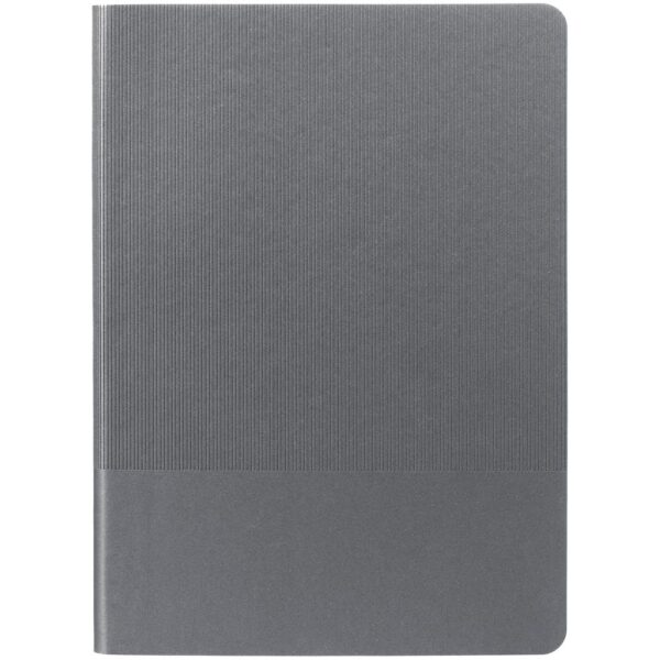 Ежедневник с гибкой обложкой выполнен из материала Soft Touch Perl, серый СС и Latte, серый (внутренний материал); дополнен ляссе серого цвета и фактурным тиснением обложки.