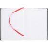 Ежедневник с гибкой обложкой, выполнен из материала Latte, красный PP, дополнен резинкой шириной 1 см с металлическим шильдом, капталом и ляссе красного цвета.