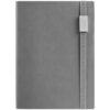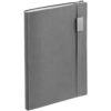 Ежедневник с гибкой обложкой, выполнен из материала Latte, серый CC, дополнен резинкой шириной 1 см с металлическим шильдом, капталом и ляссе серого цвета.