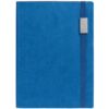 Ежедневник с гибкой обложкой, выполнен из материала Latte, синий НН, дополнен резинкой шириной 1 см с металлическим шильдом, капталом и ляссе синего цвета.