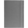 Ежедневник с гибкой обложкой выполнен из материала Latte, серый СС, и дополнен резинкой шириной 1 см, капталом и ляссе серого цвета.