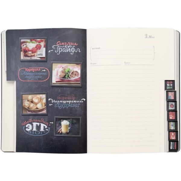 В ежедневнике собраны рецепты из разных уголков земного шара — по 4 рецепта из 12 стран мира. Мы изучили кухню каждой страны и предлагаем вам рецепты самых традиционных национальных блюд с указанием географического места их происхождения. Каждый месяц вас ждет знакомство с новой страной, и каждый уикенд — с новым блюдом, которым вы сможете порадовать себя и своих близких.