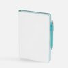 Гибкая обложка, материал обложки — Soft Touch, белый BB и Latte, цвета морской волны II; материал петли для ручки — Nice Touch, цвета морской волны II. Срез обложки окрашен в цвет морской волны.