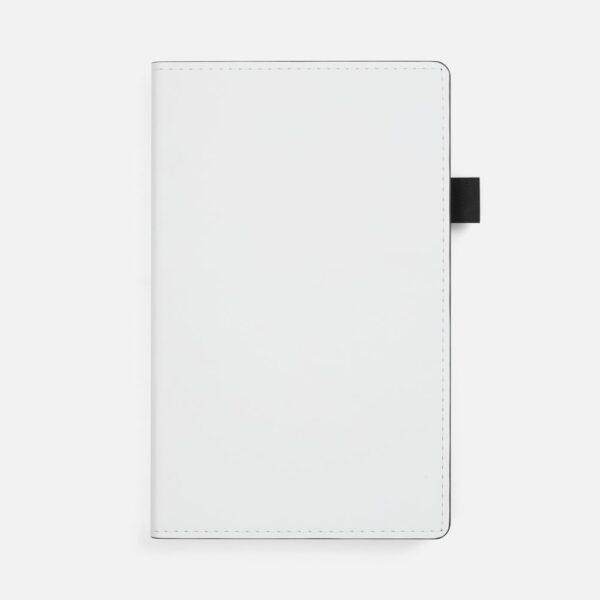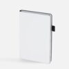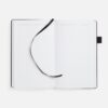 Гибкая обложка, материал обложки — Soft Touch, белый BB и Latte, черный АА; материал петли для ручки — Nice Touch, черный АА. Срез обложки окрашен в черный цвет.