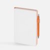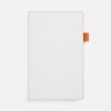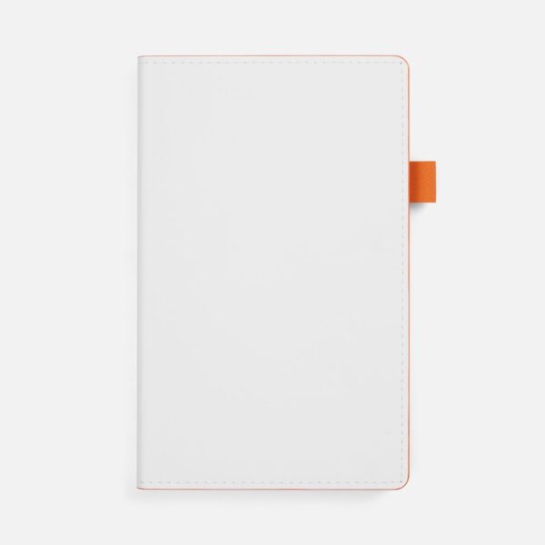 Гибкая обложка, материал обложки — Soft Touch, белый BB и Latte, оранжевый ОО; материал петли для ручки — Nice Touch, оранжевый ОО. Срез обложки окрашен в оранжевый цвет.