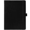 Еженедельник в твердой обложке выполнен из материала Nebraska, черный АА, дополнен резинкой, петлей для ручки и ляссе черного цвета.