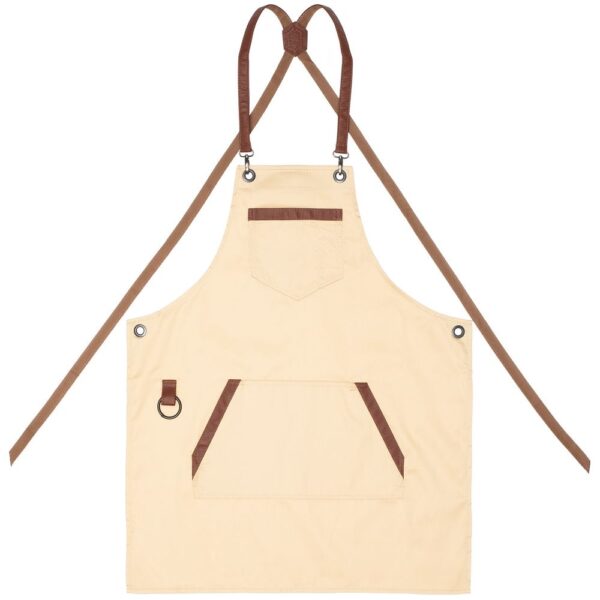Функциональные карманы на груди и подоле эффектно украшают фартук, изготовленный из качественной дышащей плотной износостойкой ткани. Благодаря динамичным крестообразным лямкам он отлично сидит как на мужской, так и на женской фигуре. Кроме того, съемные лямки упрощают процесс стирки в стиральной машине.