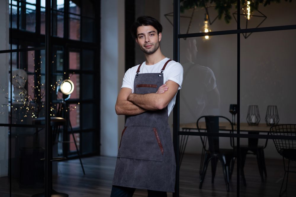 Универсальный фартук бармена, бариста, официанта. Может служить отличным подарком и для людей творческих профессий — художников или скульпторов — и всех, кто любит мастерить что-то своими руками.