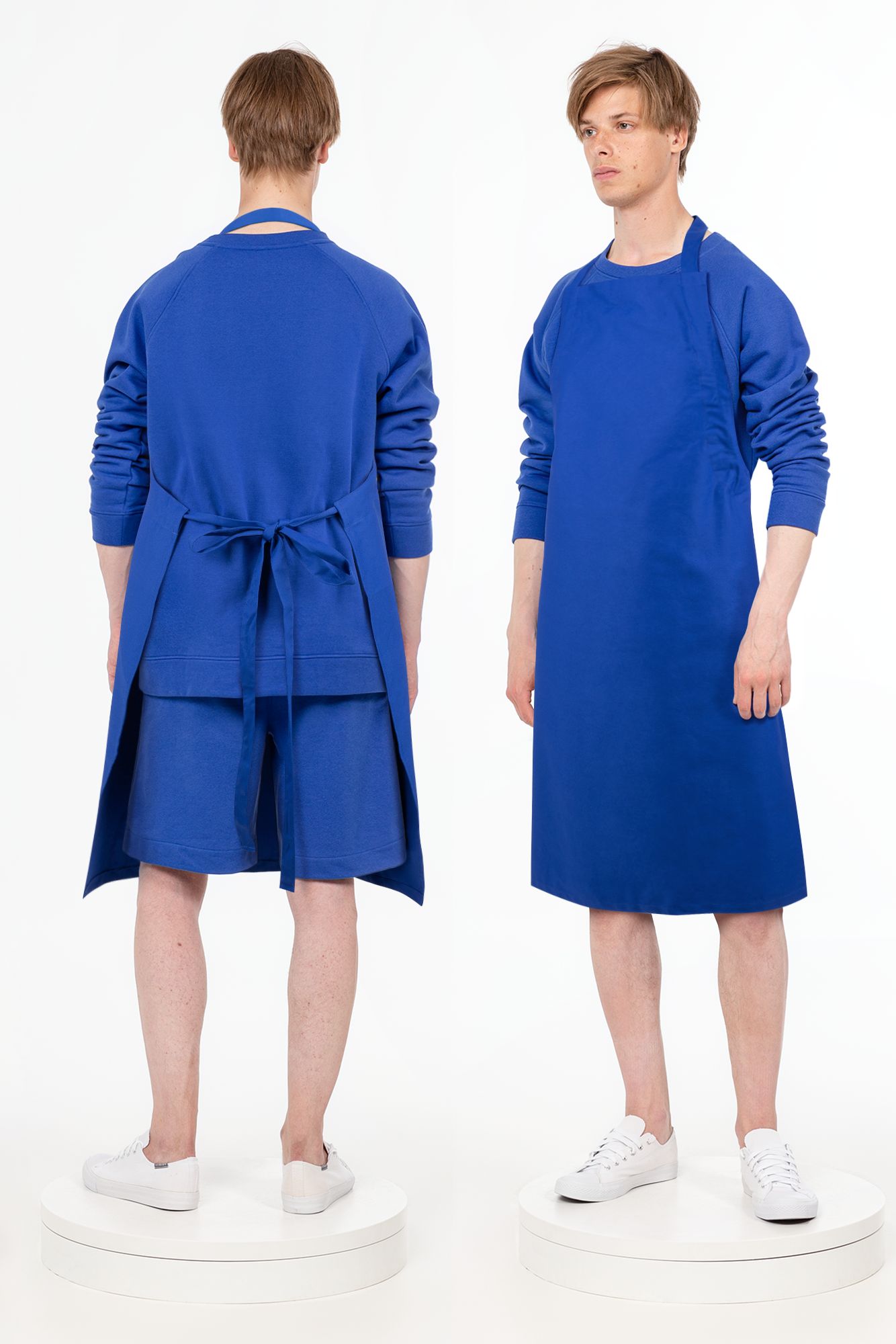 Базовый фартук разработан в рамках единой коллекции одежды и аксессуаров и легко комбинируется с ее элементами. Специально спроектированные лекала и технологии пошива открывают простор для любых вариантов кастомизации и нанесения изображений. На видимой части изделий нет лейблов с айдентикой бренда, а название бренда с уходника легко удалить.
