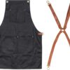 - Стильные акценты: Ремни светлого бука не только удобно фиксируют фартук, но и добавляют контраста черному цвету, делая его настоящим модным заявлением.