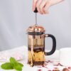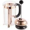 Элегантная оправа цвета розового золота защитит колбу от повреждений, а пластиковая ручка не даст обжечься о горячую поверхность.
