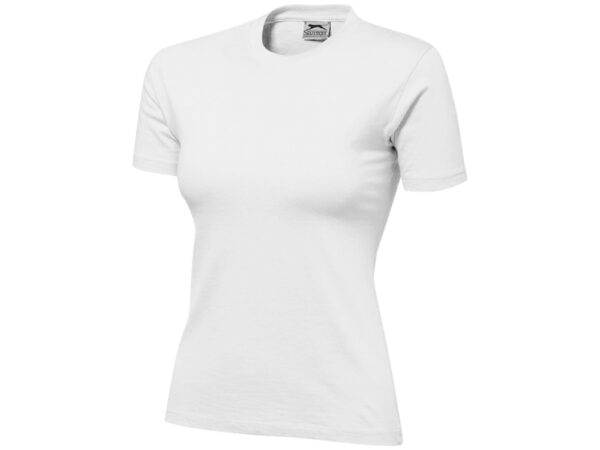 Женская футболка с короткими рукавами Ace. Модель стандартной посадки. Женская и детская модели — со швами по бокам. Резинка с эластаном и двойной строчкой на воротнике. Лента от плеча к плечу. Однослойная джерси, 100% хлопок. 150 г/м².