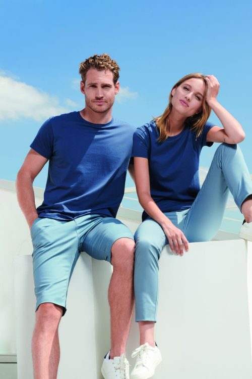 Мужская бесшовная облегающая футболка из органического хлопка с круглым вырезом.