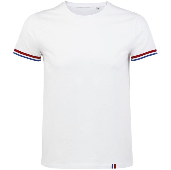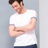 Мужская бесшовная футболка из 100% гребенного хлопка с круглым вырезом. Воротник и нижний край рукавов выполнен резинкой 1х1. Контрастные цветные полоски по низу рукавов.
