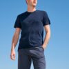 Футболка унисекс с боковыми швами из переработанных материалов. Для изготовления каждой футболки переработано 4 бутылки, из которых в последствии была сделана полиэстеровая пряжа. Круглый вырез отделан резинкой, укрепляющая тесьма по вороту.