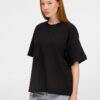 Футболка оверсайз унисекс с круглым вырезом и без боковых швов. Выполнена из смеси переработанного и обычного хлопка. Благодаря повышенной плотности отлично держит форму. Укрепляющая тесьма по вороту. Усиленные плечевые швы. Круглый вырез отделан резинкой.
