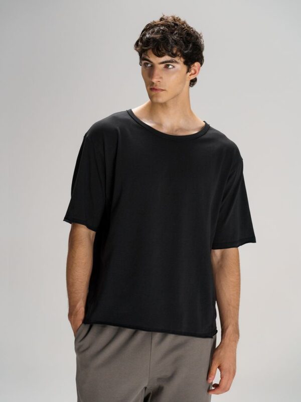 Футболка унисекс свободной посадки Vozduh создана для тех, кто следит за трендами и ценит комфорт. Необработанные края рукавов и низа изделия добавляют ему оригинальности и легкой небрежности, а боковые вставки создают притягательный летящий силуэт. Футболка изготовлена из хлопка с добавлением эластана, что обеспечивает особый комфорт и прочность изделия. Просто нужна как Vozduh, — эта линейка одежды станет глотком свежего воздуха в повседневном гардеробе. Необработанные края изделий отражают динамику воздушной стихии, а свободный крой напоминает о легкости самого приятного дуновения.