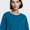 Объемная кроеная футболка с удлиненным рукавом из гребенного хлопка с эластаном не стесняет движений и создает модный расслабленный силуэт.