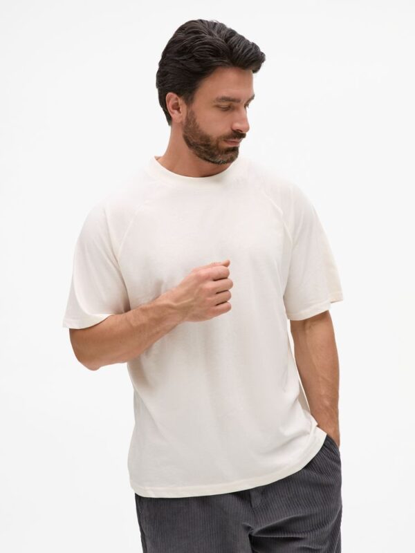 Всем, кто мечтает о собственной капсульной коллекции, но не знает, с чего начать. Футболка унисекс свободного кроя с рукавами реглан.