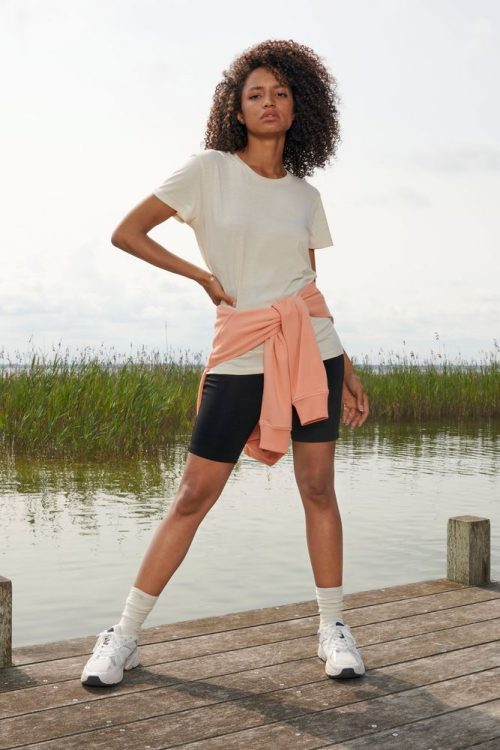 Бесшовная футболка унисекс выполнена из смеси обычного хлопка с переработанным.