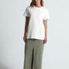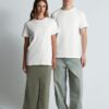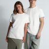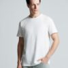 Высококачественное полотно джерси (кулирная гладь), которое прошло активное крашение, предварительную термоусадку и обработку энзимами Изделие долго сохраняет свою форму, не деформируется и не выцветает при стирке Идеально подходит для всевозможных видов нанесения благодаря использованию особо гладкой гребенной пряжи Круглая горловина выполнена резинкой 1x1 с добавлением эластана Ворот усилен укрепляющей тесьмой Плечевые швы изнутри усилены силиконовой тесьмой На горловине только сатиновый ярлык с указанием размера, который не мешает нанесению или кастомизации Нейтральный белый цвет без оттенка.