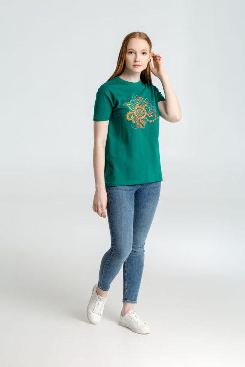 Kristina Moment (OHMYARTStore) — дизайнер из Санкт-Петербурга со своим узнаваемым стилем, а также декоратор и автор иллюстраций, многие из которых уже стали популярными принтами для текстиля и канцелярии.Футболка, без боковых швов и с воротником, защищенным от деформации резинкой с эластаном. Отлично держит форму.