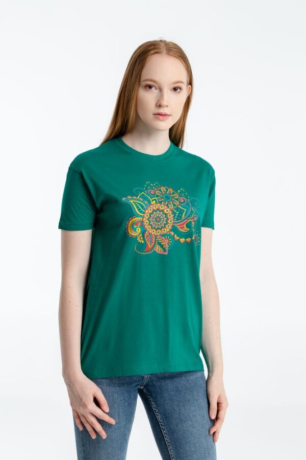 Футболка «Узор», зеленая с логотипом купить оптом в Москве по низкой цене | Интернет-магазин Сувенирная продукция и мерч с логотипом компании на заказ в Москве - Идеальные подарки клиентам | TairGifts