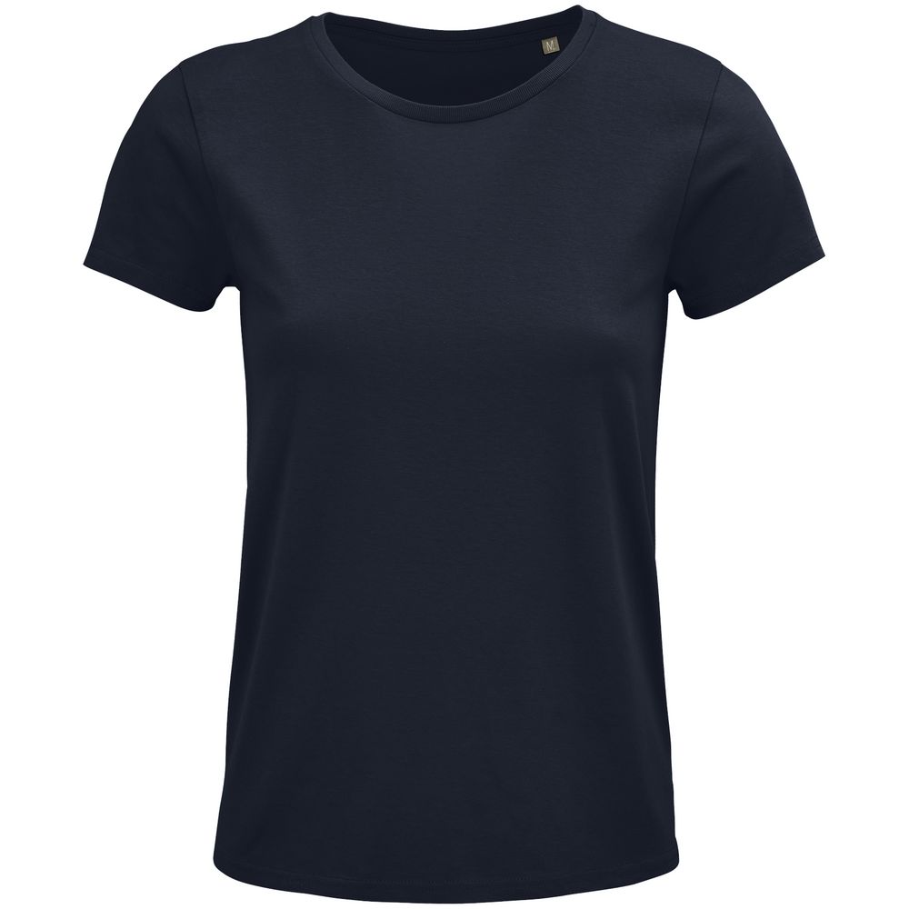 Женская бесшовная облегающая футболка из органического хлопка с круглым вырезом.