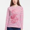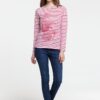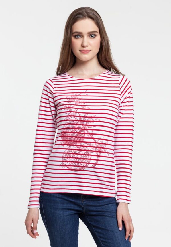 Кроеная футболка с длинными рукавами и круглым воротом из 100% гребенного хлопка. Приталенная модель с контрастной отделкой из тонкого денима по внутренней стороне ворота и боковым разрезам снизу.