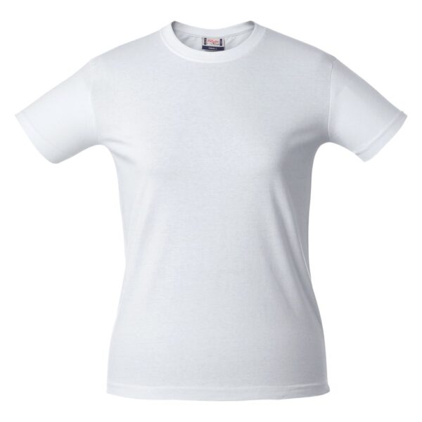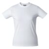 Женская футболка с уплотненными швами на плечах и двойным швом с эластаном. Четырехслойная резинка на воротнике предохраняет его от растяжения.