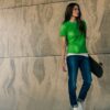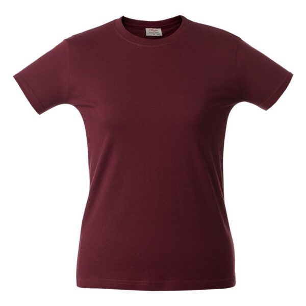 Женская футболка с уплотненными швами на плечах и двойным швом с эластаном. Четырехслойная резинка на воротнике предохраняет его от растяжения.