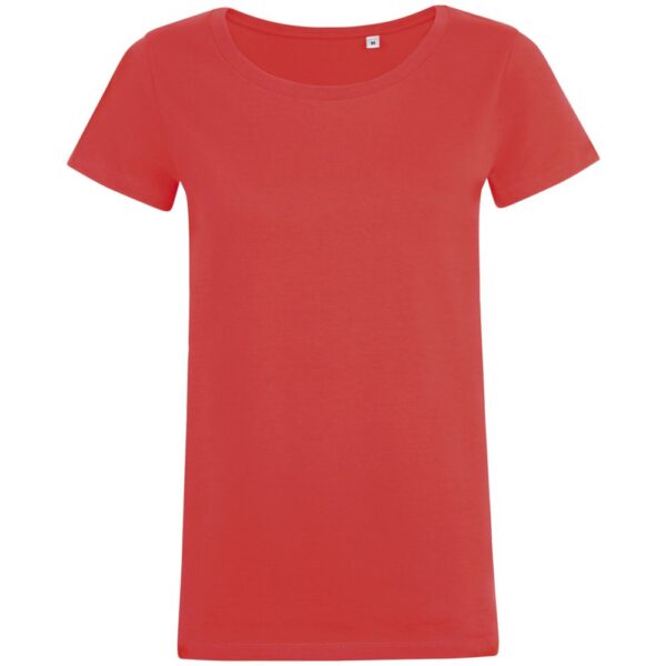 Приталенная кроеная футболка с женственной круглой горловиной. Ворот в тонкую резинку с укрепляющей тесьмой.