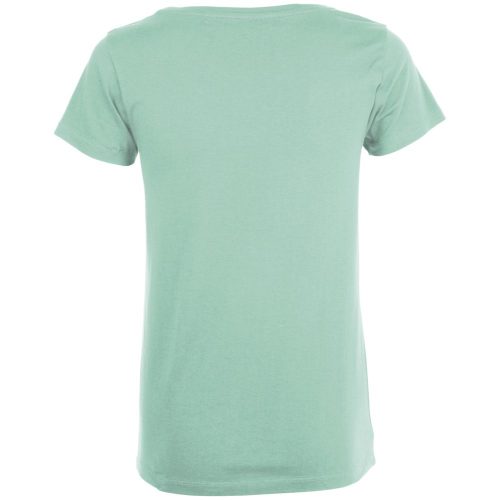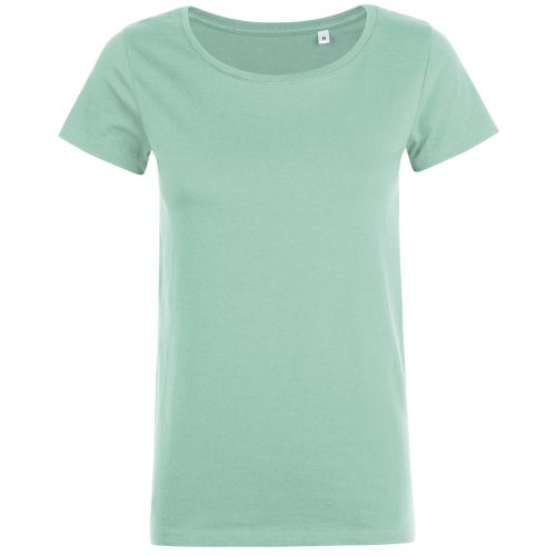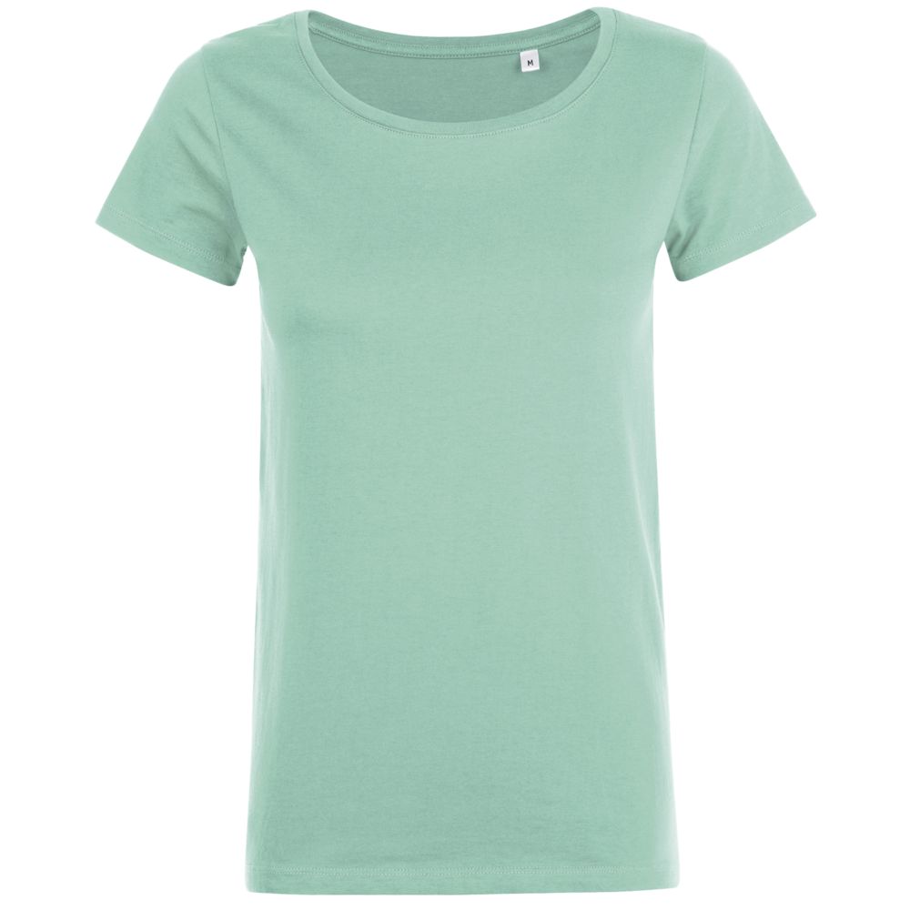 Приталенная кроеная футболка с женственной круглой горловиной. Ворот в тонкую резинку с укрепляющей тесьмой.