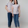 Двусторонняя женская футболка с круглым вырезом и плоскими швами.