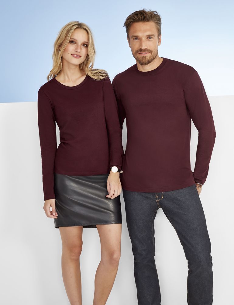 Кроеная футболка (с боковыми швами) с круглым воротом и длинными рукавами. Укрепляющая тесьма по вороту, нижний край рукава без резинки. Приталенный силуэт.