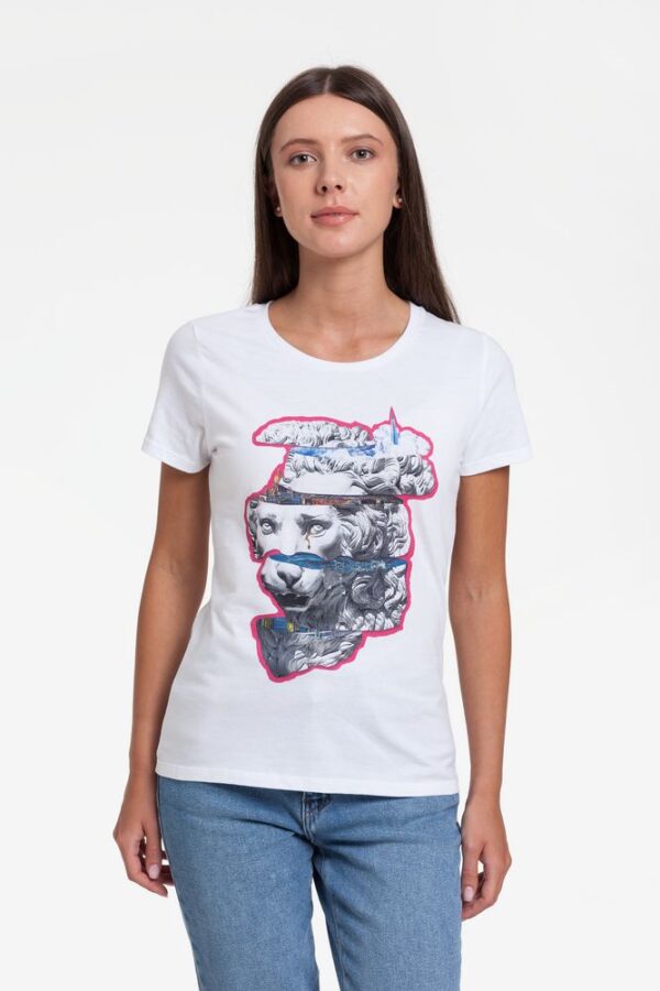 Футболка женская «Смотри вглубь», белая с логотипом купить оптом в Москве по низкой цене | Интернет-магазин Сувенирная продукция и мерч с логотипом компании на заказ в Москве - Идеальные подарки клиентам | TairGifts