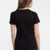 Кроеная женская футболка с круглым воротом-резинкой (рибана 1x1 с лайкрой). Высокое качество материалов: полотно джерси (кулирная гладь), прошедшее предварительную термоусадку; нить 30/1; особо гладкая гребенная пряжа. Активное крашение полотна. Двойная прострочка плечевых швов.