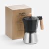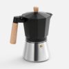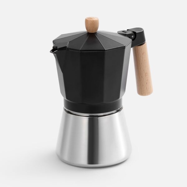 Верхняя часть выполнена из окрашенного алюминия, а нижняя — из нержавеющей стали с зеркальной полировкой, что обеспечивает долговечность и стильный внешний вид. Удобная деревянная ручка не нагревается —комфорт и безопасность при использовании гарантированы. Эта кофеварка позволит быстро и легко приготовить классический эспрессо, чтобы наслаждаться свежим крепким кофе снова и снова.