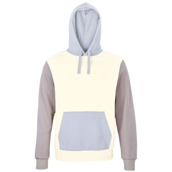 Трехцветное утепленное худи унисекс из органического хлопка и переработанного полиэстера.