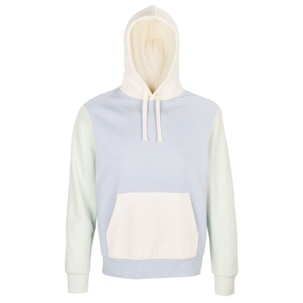 Трехцветное утепленное худи унисекс из органического хлопка и переработанного полиэстера.